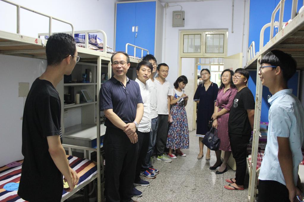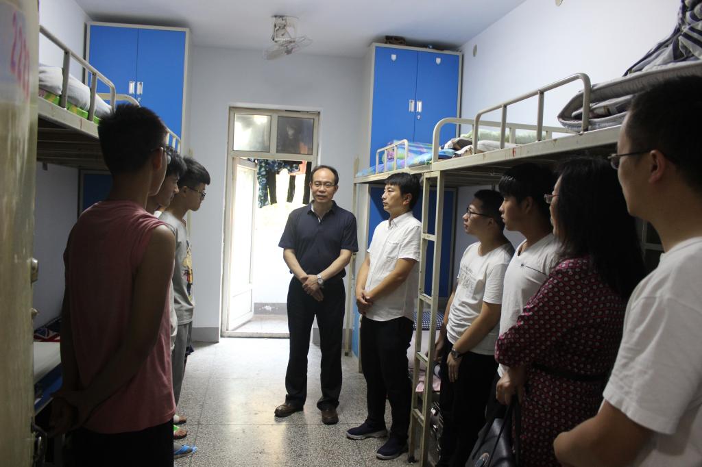 9月13日下午,副董事长王选年、公司党总支书记田涛、经理任敏、团总支书记文文以及各年级辅导员深入公司员工宿舍慰问2017级新生。