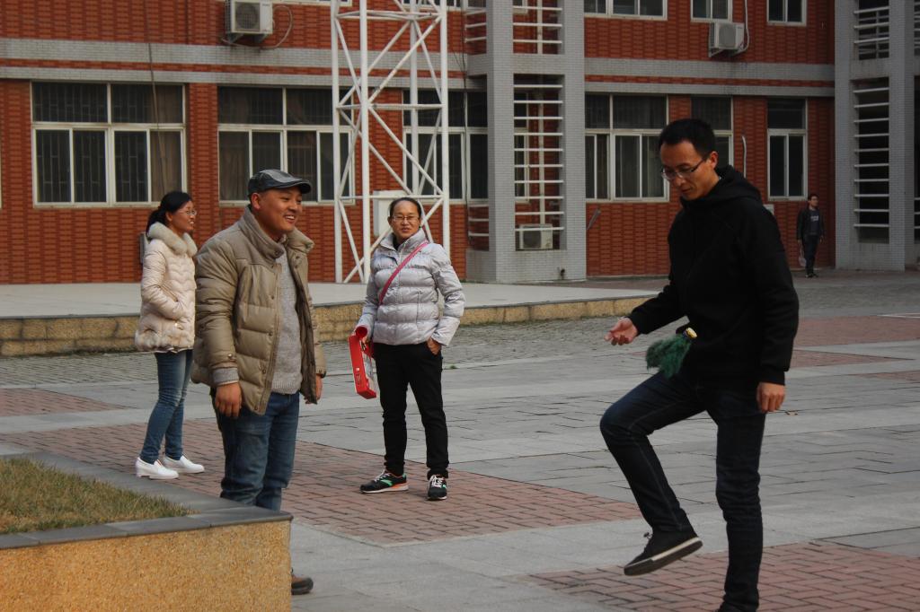 在初春的微风中,比赛正式拉开帷幕,参赛者也早已就位、认真准备比赛。赛场分为两个区域,在场地较为宽阔的羽毛球区的选手们精神抖擞,一举手、一跳跃尽显青春力量。参加踢毽子比赛的老师们也跃跃欲试,充满活力。比赛正式开始后,由裁判负责计时与记录,比赛时间为一分钟,每位选手都拼尽全力,其中周娟娟老师以灵巧的身姿踢出了55个的好成绩,赛事进行到最后,完成比赛的教职工们已经不在乎输赢,他们忘记工作中的疲惫,在欢声笑语中讨论生活中的趣事、交流工作中的经验。
