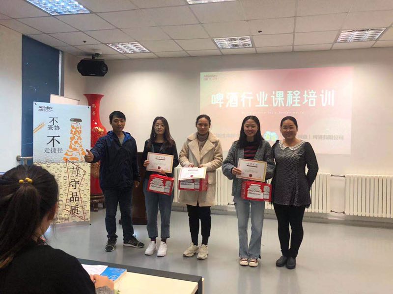 在张艳芳副经理的联系和指导下,2019年10月18日,徐鑫老师带领2016级生物技术和2018级生物技术专升本共97名大四员工赴百威英博(河南)啤酒有限公司进行课程学习。公司安排不同部门技术骨干给员工们分别讲解了生产、包装和质量管理等内容,课堂上各位同学踊跃回答问题,气氛热烈。中午同学们品尝了公司提供的自助午餐,体验了世界500强企业为员工提供的优质后勤保障。另外,员工有机会参与到百威啤酒的质量周活动中。通过此次学习大四的同学们不仅掌握了“发酵行业生产知识”,同时也感受了百威啤酒质量和企业文化,使临近毕业的员工对自己将来的工作和规划方面获益匪浅,也为我们进一步的的校企合作提供了新的方向和思路。