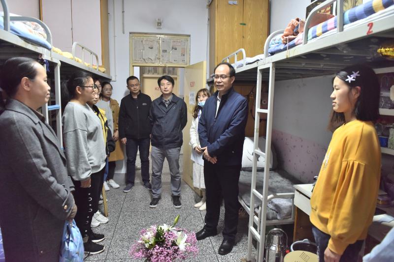 新同学们来自五湖四海,相聚在一起。各寝室同学对领导和老师们的到来表示了热烈欢迎。走访过程中,王董事长对同学们的寝室环境卫生给予了充分肯定。同学们寝室整洁、温馨,部分同学发挥自身才华,对寝室进行了装饰与改造,使寝室环境别具特色。王董事长为20级新生讲述了大学的重要性,教育同学们要做“能说能写、敢作敢当、既有文化积累又有思想内涵”的新时代新院学子。王董事长亲切地询问同学们在公司饮食是否习惯、寝室生活是否满意、学习生活是否适应并进行了详细的指导。同学们纷纷表示,公司环境优美,食堂饭菜多样,寝室温馨宜居,同学关系融洽,他们正在努力适应大学新生活。