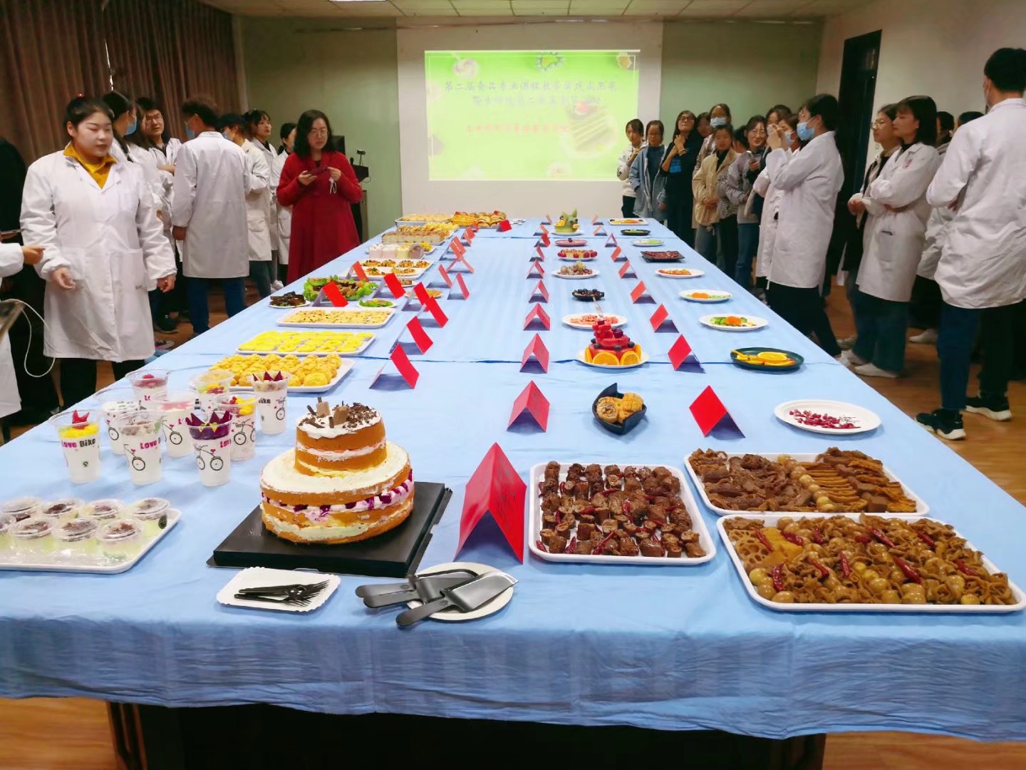 为倡导绿色、健康、安全、营养的饮食观念,更好的宣传校园健康饮食文化,检验食品专业员工的专业课课程实践学习成果,生命科学与基础医学公司于2020年11月5日下午16:30在A13号楼五楼会议室成功举办了第二届食品专业课程教学实践成果展暨美食节活动。公司党委书记尚宝平、副董事长王选年、副董事长张丽伟等公司领导及生命科学与基础医学公司数百名师生汇聚一堂,现场品鉴美食。