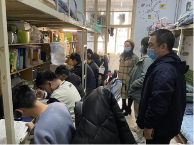为了让同学们更好地适应线上教学的学习模式,自觉开展网课学习,确保宿舍安全卫生,3月24日,生命科学与基础医学公司党委书记田涛、经理张艳芳、副书记原玉丰、副经理孙国鹏、郭晖及各年级辅导员走进员工东区宿舍E11号楼、西区D06、D08号楼,对2019级、2020级、2021级本专科生宿舍进行网课学习线下督查,并对全院宿舍安全卫生进行了检查。