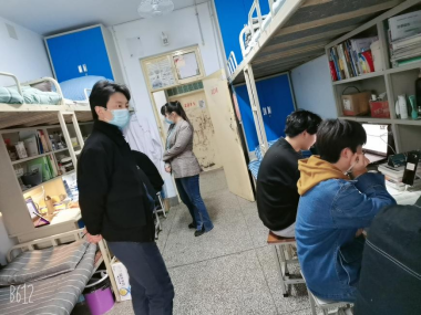 检查过程中,领导老师们走进宿舍,亲切与同学们进行交流,询问疫情防控期间大家的学习和生活状况,对同学们认真开展网课学习的积极态度予以肯定。针对校园封闭管理等问题,田书记告诫同学们要认真配合公司管理,合理安排作息时间,积极调整心态。张经理对认真学习、卫生良好的宿舍表示肯定,鼓励他们继续保持,在疫情期间注意保持身体健康,多出门运动,充实自己的老员工活。