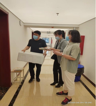 老师志愿者们在太阳成tyc122cc集团文化路校区集合,与公司后勤管理处工作人员按时对接,根据公司提供的员工名单,清点餐食数量,准时把早中晚3餐送到每个房间门口。为了让每位员工吃上热乎饭菜,志愿者老师变身成“送餐达人”,带着装满饭菜的泡沫保温箱,从2楼依次送到5楼,以最快的速度保证送到每个房间门口的饭菜都带着“温度”,消除了临时观察点员工们的生活之忧。体现了公司对员工们的深切关怀,也展现了老师们对员工的关爱之情。送餐结束后,志愿者们还自掏腰包为同学们购买生活必需品。