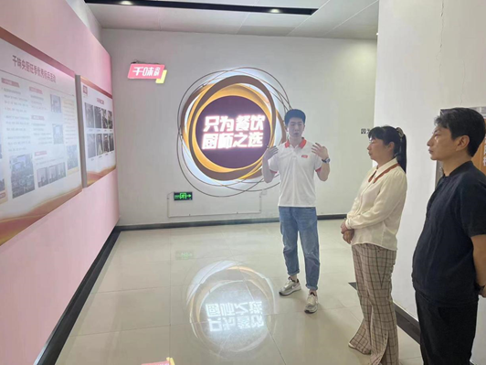 首先,公司一行人在王昊程的陪同下,参观了公司企业品牌及文化走廊及生产车间,从企业概括、特色产品、渠道分布、企业文化等五个方面了解了千味央厨公司的历史和发展情况。随后,公司一行人员与王昊程进行了座谈。双方针对校企合作方式、人才联合培养等方面,就员工专业建设、课程设计、实习合作做了深入的交流研讨。希望今后双方在员工实习就业、产学研等方面进行深入合作。