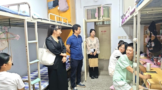 9月18日,公司党委书记田涛、经理张艳芳、副书记魏亮、副经理张家洋、学工办主任郭天琪和24级辅导员李攀月分别到新生宿舍走访慰问。