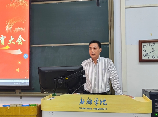 接着,教师代表贺珧珈老师上台发言。他鼓励同学们要勇于面对挑战,敢于突破自我,珍惜青春时光,保持学习的热情,不断提升自我。同时,他号召全体教师在今后的教学工作中,共同努力,为同学们的成长成才提供有力的支持和帮助。在校生代表张景与新生代表程丁怡分别从个人成长经历与新生展望的不同视角,发表了鼓舞人心的演讲。