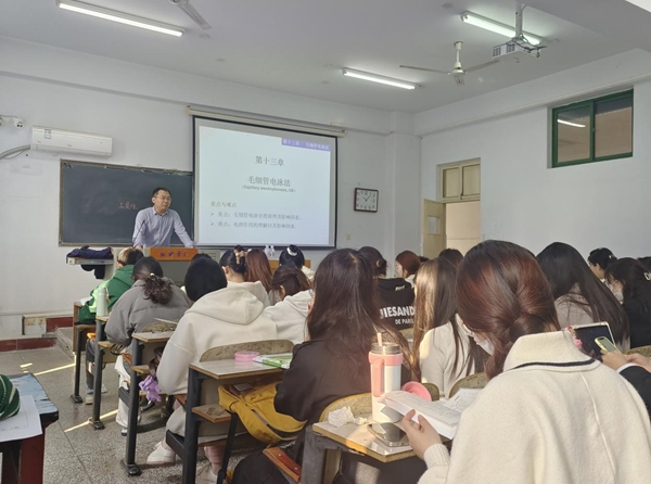 在授课过程中,田金河老师运用丰富的教学手段和方法,详细讲解了毛细管电泳分离原理及影响因素。在整个教学过程中,田金河老师教学思路清晰,教学内容重难点突出,在授课过程中积极引导员工讨论,启发员工思考,充分体现出了员工的主体和教师的主导作用。课堂上,员工精神状态饱满,课堂气氛活跃,取得了良好的教学效果。课后,各位听课教师就教学内容、教学方法和师生互动等方面与田金河老师进行了深入的交流与探讨。