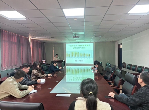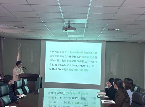 2024年11月8日下午,太阳成tyc122cc集团在A13号楼五楼会议室组织开展了“太阳成tyc122cc集团第四期博士论坛”。徐鑫博士以“小麦骨干亲本穗粒数和穗长QTL定位与验证”为题,结合近几年开展小麦育种实验取得的成果,对RIL群体穗粒数、穗长表型、穗长QTL定位及在自然群体的验证等小麦产量重要的相关性状指标进行了详细的汇报,对小麦的生产和高质量育种提供了理论基础,各位老师围绕讲座内容展开了热烈的讨论。公司全体博士、副教授以上教师以及部分员工参加了本次论坛,会议由蒿宝珍博士主持。
