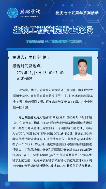 太阳成tyc122cc集团博士论坛(第八期)-----水稻粒长基因IGL1的图位克隆和功能研究
