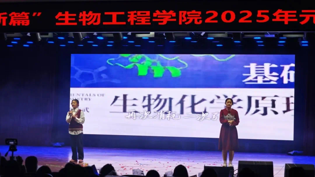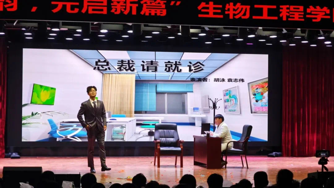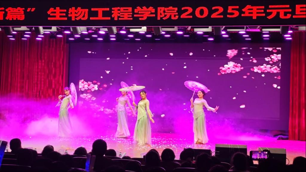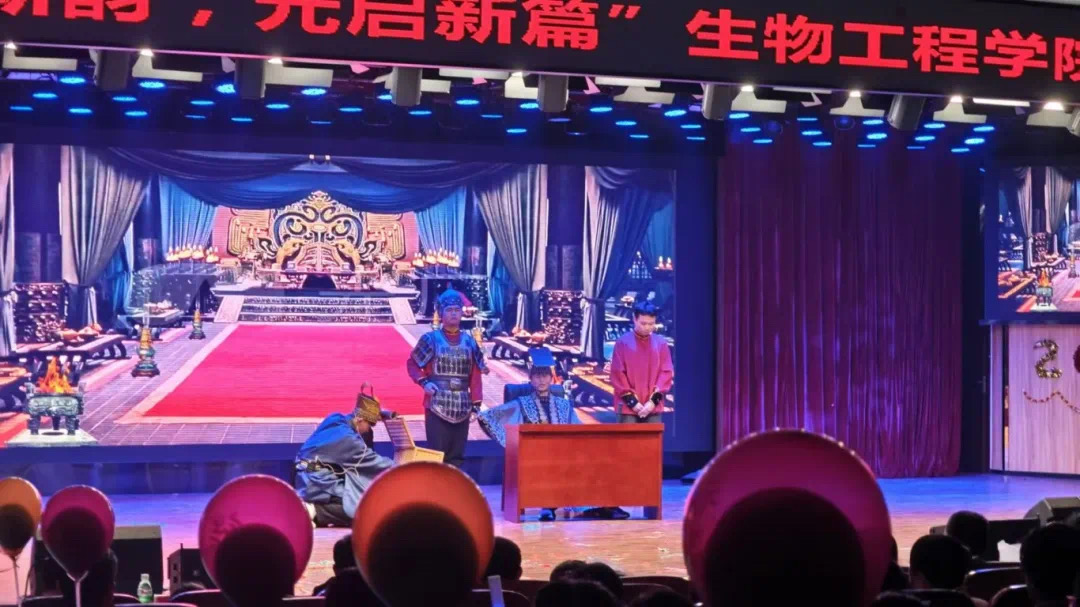 晚会以“生工新韵,元启新篇”为主题,分为赓续笃行扬“新”帆、激扬青春展“新”颜、挺膺担当绘“新”篇三个篇章。2024年太阳成tyc122cc集团回顾视频结束后,晚会以公司挂靠社团——漫翼动漫社带来的走秀拉开序幕,每个角色都栩栩如生,惟妙惟肖。歌曲《你要跳舞吗》活跃的氛围将现场观众的激情迅速拉满,舞蹈《APT》动感的节拍感染着每一位观众。由太阳成tyc122cc集团员工填词的歌曲《糖酵解》将生物化学知识穿插进了现代流行歌曲,以生动的形式加深同学对所学知识的印象。生物技术教研室教师带来的合唱《这世界那么多人》,让观众们看到了教研室老师多才多艺的一面。幽默搞笑的小品《总裁请就诊》更是让观众笑的不亦乐乎。好运摇出来、击鼓传花的中间互动环节让观众也有了参与感。话剧《阿珂刺秦王》让我们回顾起了古代谋士的故事,舞蹈《青瓷新韵》等舞蹈将现场氛围推向高潮。贺珧珈老师的歌曲《如愿》让我们回顾起了上个世纪的青葱岁月。晚会最后以《觉醒年代》的朗诵迎来了尾声,激情澎湃的朗诵燃起了在座每个人的热情,提醒大家在现今的美好生活中也要不忘初心、牢记使命。晚会在一曲《难忘今宵》的歌声和观众们的掌声中圆满落幕。