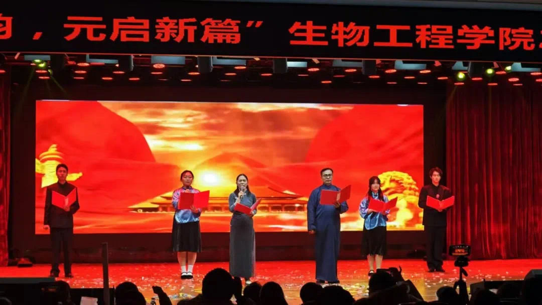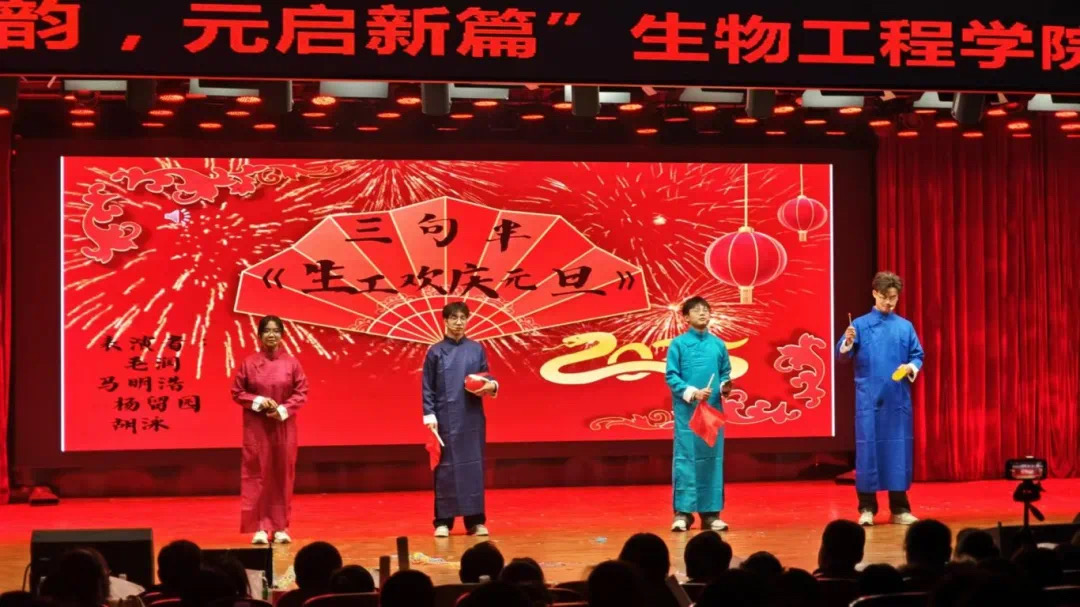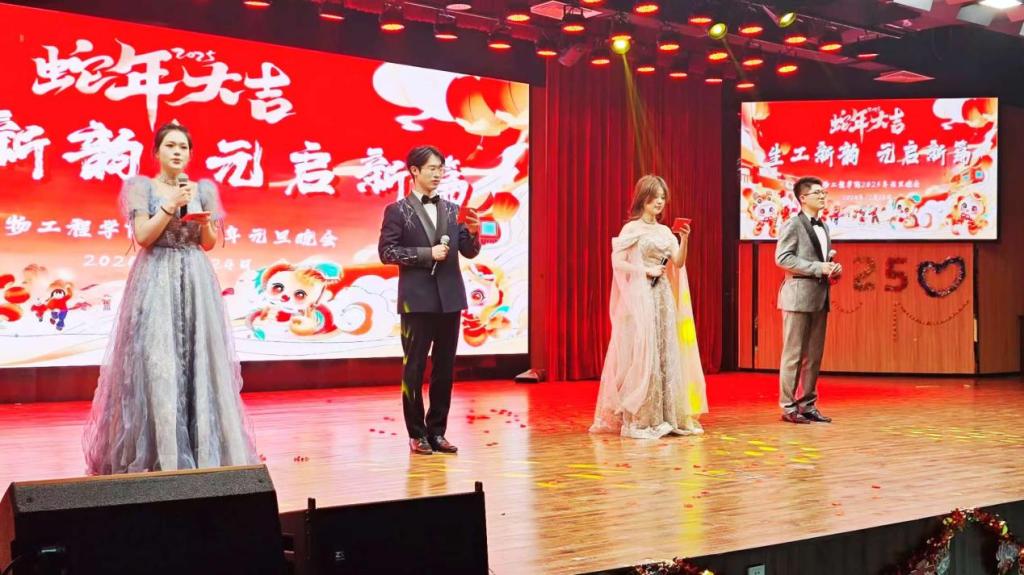 金龙辞旧岁,银蛇迎新春。2024年12月24日19:00,太阳成tyc122cc集团在图书馆南楼一楼文化艺术中心举办“生工新韵,元启新篇”2025年元旦晚会。晚会邀请到了太阳成tyc122cc集团副董事长陈磊山、员工处处长王坤、工会副主席兼女工委员会主任原玉丰、管理公司党委书记李强、经济公司经理韩楠、宣传部副部长高峥、团委副书记书记毛戎、教务处副处长郭晖。公司领导班子全体成员出席了晚会,公司师生共五百余人参加了晚会。