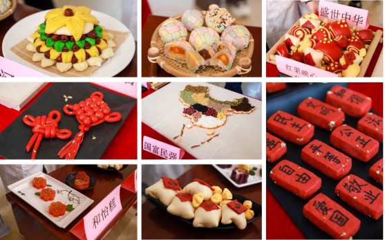 本次美食节以游园会的形式组织参观,分布在大厅内的展台展示了蕴含“家国情怀、优秀品质、春夏秋冬、动物元素”的特色冷拼,包含“苦难与抗争、发展与稳定、健康与未来”三部曲的中式面点,具有“四季清爽、活力特调、秋冬暖心”三个系列的创新饮品以及独具爱国情感与艺术特色的西式面点和烟火卤味等各种美食。活动现场还设有抽奖等环节,氛围热烈。