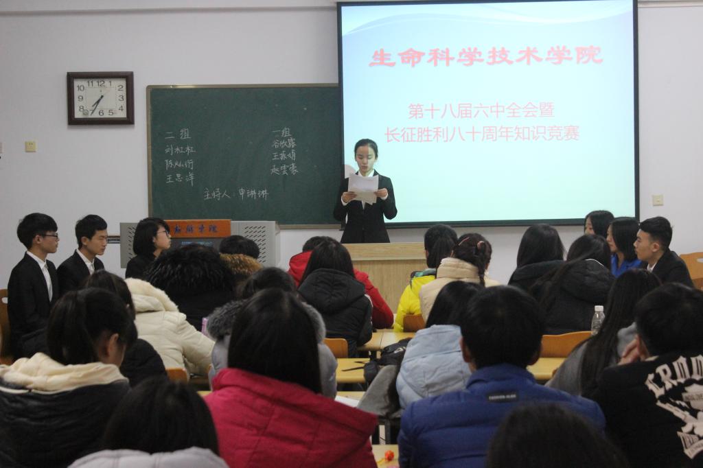 本次比赛围绕十八届六中全会精神及长征的重要历史事件、主要战役、相关历史人物等方面出题。比赛时选手们分成了两组,主持人提出问题后各组选手沉着冷静、机智灵活地进行斟酌应答,赛场气氛十分热烈,台下观众报以热烈掌声和阵阵喝彩。经过几轮次的激烈角逐之后,第一组选手获得胜利。
