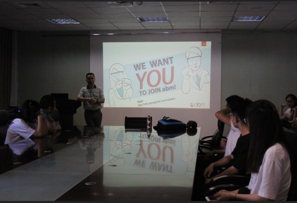 会议开始,任经理向大家介绍了“爱必梦生物技术有限公司”创始人李沛祥的具体情况,并代表全体师生对李沛祥的到来表示热烈的欢迎。任经理的发言之后,李沛祥的宣讲正式开始,李沛祥首先对自己进行了详细的介绍,接着向大家展示了“爱必梦生物科学技术有限公司”的工作地点和具有的独特的生物技术,以及公司对员工的各种福利。对公司优秀人才的介绍充分展示了该公司“看重能力,不看重学历”的人才重用标准。最后,李沛祥对公司员工针对听讲过程中产生的疑问进行了详细的解答。