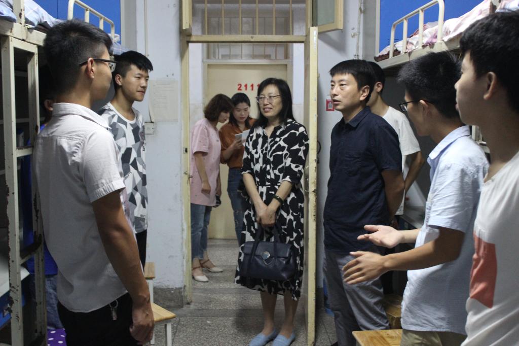 9月13日下午,公司党总支书记田涛、经理任敏以及各年级辅导员深入员工宿舍慰问2018级新生。