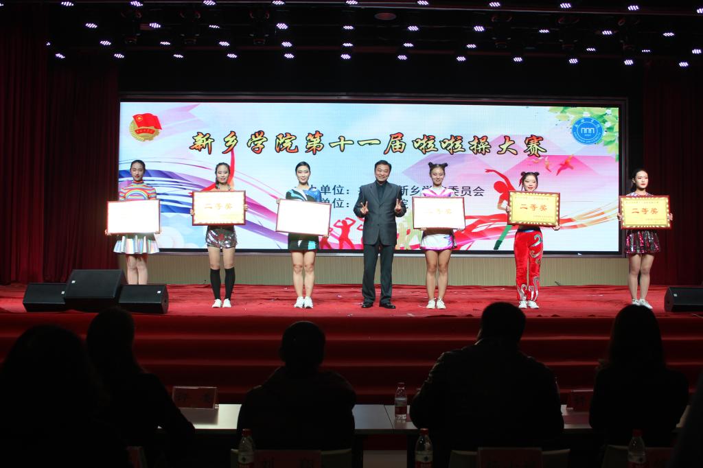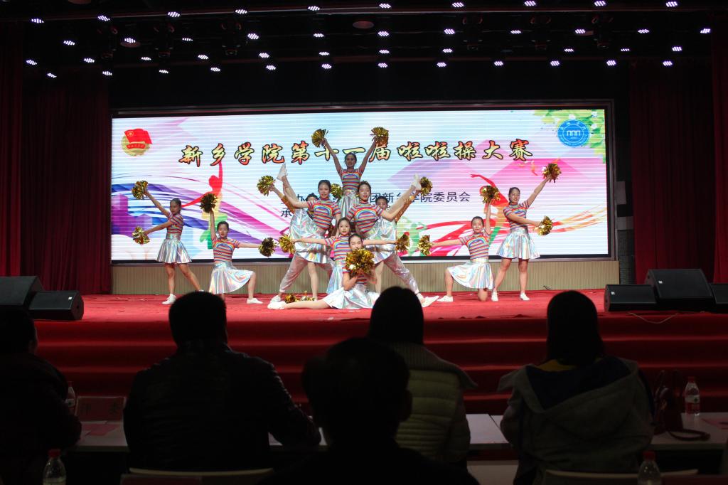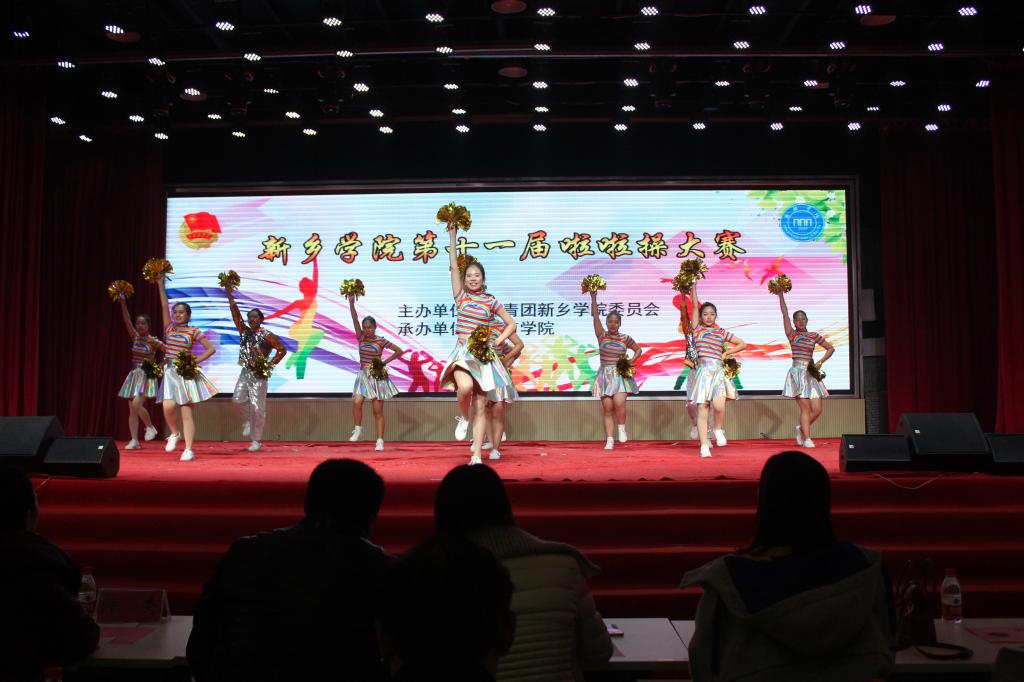 比赛开始之前,啦啦操队队员在侯场区等待,他们仍然在进行紧张的排练。比赛伊始,主持人介绍莅临此次比赛的公司领导老师及评委,并宣读比赛规则。随后,主持人宣布第十一届啦啦操大赛正式开始。各公司啦啦操代表队都将他们的努力成果展现在舞台上。公司啦啦操队第三位上场,他们手执金色花球,舞步整齐,动作铿锵有力,伴着音乐舞动身体。随着音乐的切换,队员们在动感的节奏中挥舞手臂,不时变化动作和队形,用身姿诠释着青春的奔放,用热情编织着青春的浪漫,舞力青春,魅力无限,而独特的造型展示了力与美的结合,带给大家一场视觉的盛宴。经过十八个院系啦啦操代表队的精彩比拼,最终,公司以9.08分的成绩获得了此次比赛的二等奖。