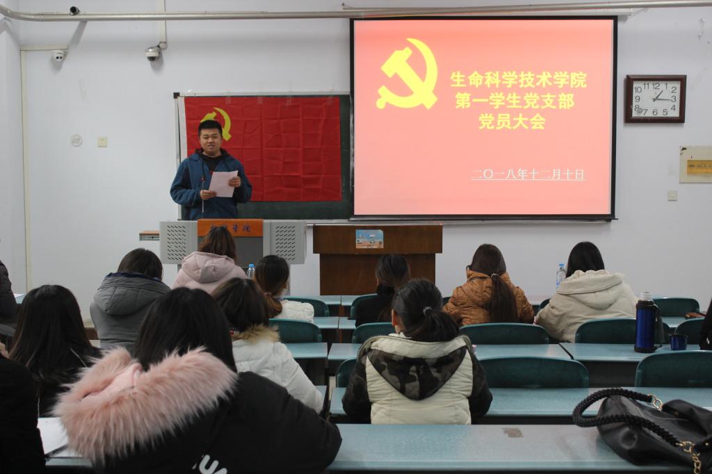 会议伊始,由主持人宣布会议纪律并由各支部纪检委员李文静、岳盼阁向大会报告参会情况。接着,由两个支部的组织委员田甲佳、杜林阳介绍此次发展党员的总体情况和支部发展对象和申请转正党员的详细情况,提出对其能否入党和按期转正的意见。然后,由各支部宣传委员徐赋、刘钇辛进行支委会汇报并提交党员大会讨论。到会党员进行讨论表示无异议,有表决权的正式党员投票对申请人的入党问题进行表决并由主持人宣布投票结果。会议最后,由牛娇娇老师、吴亚旗老师宣读大会关于接受申请人为预备党员,接受转正申请人为正式党员的决议。随后新发展对象对着党旗进行庄严宣誓,宣誓后由新党员代表李懿鹏、崔雨楠,预备党员齐晨阳、刘安南代表发言。最后,由两个支部书记牛姣姣老师、吴亚旗老师进行大会总结发言。