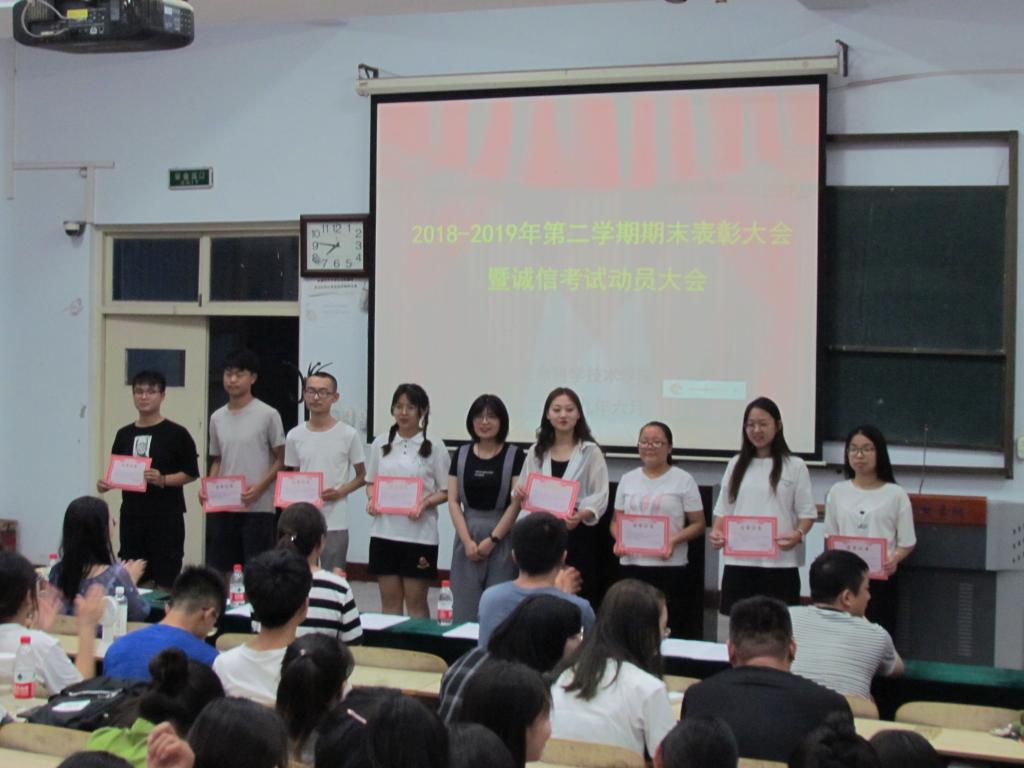此次大会不仅是表彰大会,也是期末诚信考试动员大会。大会不仅对公司本学期工作进行了总结,表彰先进,充分发挥榜样力量,同时进一步提高同学们的诚信意识,激励同学们在接下来的考试中取得优异成绩。