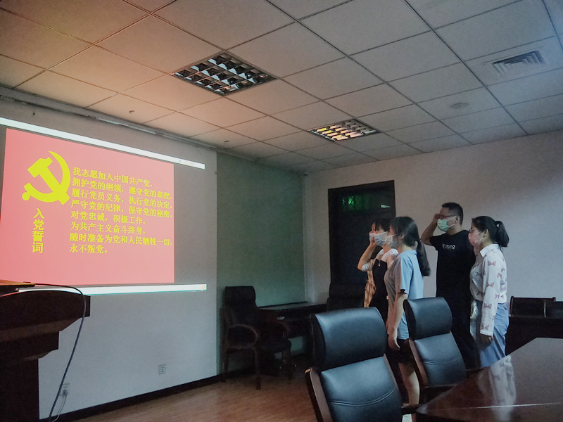 会议伊始,首先张书记总结了在疫情期间的工作,提出我们要不忘初心牢记使命,时刻发挥党员的先锋模范作用,要通过学习先进的理论知识保持自己的先进性,并对毕业生党员给予祝福。随后由李景瑞同志介绍本次发展党员的总体情况,然后由第一员工党支部组织委员田甲佳和第二员工党支部组织委员耿乾龙分别介绍新发展对象和申请转正党员的情况,并由张志育同志汇报对申请入党人的培养教育以及政审的情况,提出支委会对其入党的意见。紧接着正式党员通过投票对申请人的入党问题和转正问题进行表决。之后由杜林阳老师宣读党员大会关于接受申请人为预备党员,接收转正申请人为正式党员的决议,然后新党员代表及新预备党员代表进行发言,最后在正式党员李懿鹏的带领下进行入党宣誓。