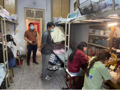 为加强常态化疫情防控下员工教育管理工作,及时了解员工的思想动态、心理状况及住宿情况,9月15日和16日,生命科学与基础医学公司党委书记田涛、经理张艳芳,副经理孙国鹏,副书记原玉丰,副经理郭晖,学工办副主任杜林阳,辅导员杨颖莹、尚雅彬、姚澜、卢韵宇深入员工寝室,进行走访慰问。