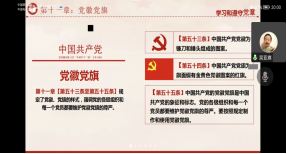 首先,吴亚旗老师阐述了《中国共产党章程》的内容,从二十大对党章重要修改展开讲解。接着,吴老师强调了学习党章的重要性及其意义,她表示学习贯彻党章是加强党的先进性建设的本质要求,是新时代老员工政治理论学习的基本要求。随后,吴老师对党章的概述、发展历程和总纲展开详细介绍,吴老师强调以党员的标准要求自己是同学们应尽义务和责任,对强化党章意识,增强同学们的创造力、凝聚力、战斗力具有极为重要的作用。最后,吴亚旗老师号召大家认真学习党章,严于律己,发奋学习,甘于奉献,坚定不移地听党话、跟党走,推进党的建设与发展。