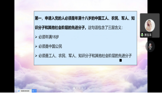 为提高入党积极分子对中国共产党先进性的认识,进一步提高自身思想水平,坚定理想信念,11月6日晚上19:00生命科学与基础医学公司第三十期第五次党课培训在线上举行。此次党课的主要内容为“加入中国共产党的条件、标准及入党程序”,由生命科学与基础医学公司党委副书记原玉丰主讲。
