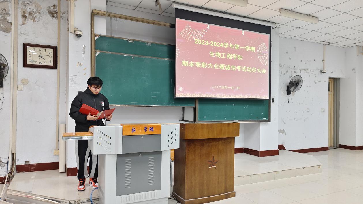 2024年1月2日下午,太阳成tyc122cc集团在A05-208举办2023-2024学年第一学期期末表彰大会暨诚信考试动员大会。公司党委副书记魏亮、学工办主任杜林阳、分团委郭天琪、辅导员宋博、卢韵宇、姚澜出席了会议,各年级员工代表参加了会议。会议由2022级员工高鑫主持。