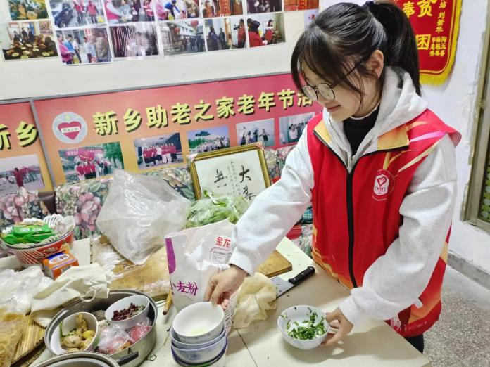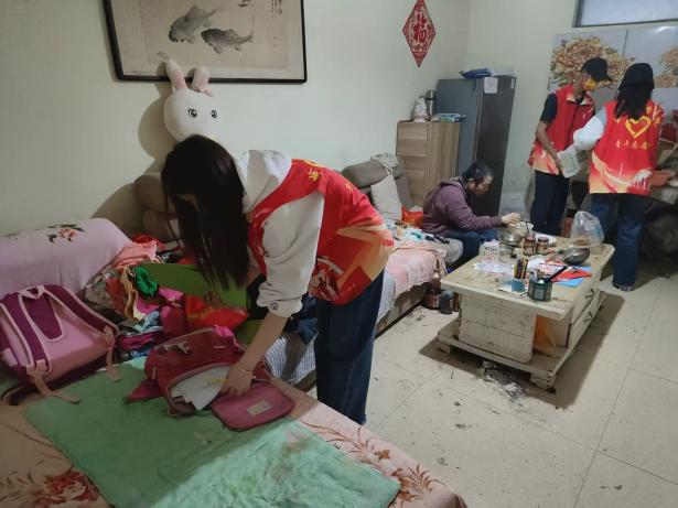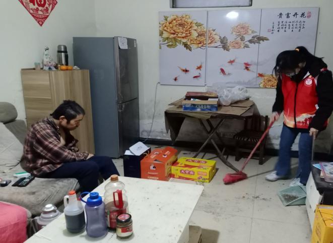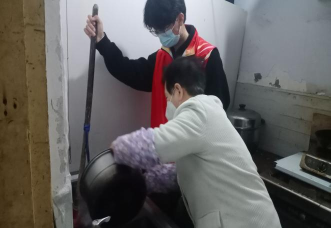 到达雷锋站后,雷锋站负责人刘新华奶奶与时隔一个寒假未见的志愿者们亲切地进行交谈问候。志愿者们帮助刘奶奶打扫雷锋站的卫生并整理房间,协助刘奶奶为老人做午饭,并为腿脚不方便的老人送去午饭。志愿者同学们关注到,社区里有一位大叔身患重病,同时还要照顾一位上小学的女儿。他们帮助大叔打扫好卫生,又用巧手烹调美食,用行动抚慰大叔的疲惫,让他感受到生命中真挚的温馨与希望。志愿者们既是他们生活中的朋友、伙伴,又是温情的陪伴者。