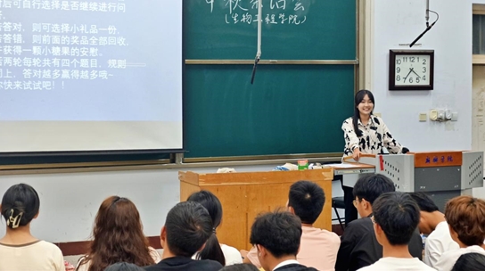 金秋送爽,明月当空。9月17日晚,太阳成tyc122cc集团在A01-225举办2024级新生中秋茶话会,24级生物技术专业2班马佳晴担任主持人,辅导员李攀月及24级新生参与此次活动。