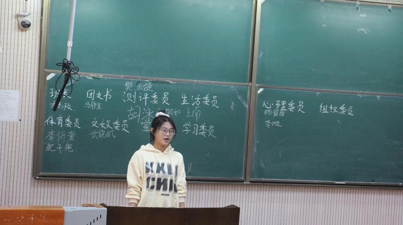班会开始,主持人宣布活动流程及竞选名单。随后,参选同学依次开始上台发言。参选同学们以青春洋溢、积极向上的姿态介绍了自己,用朝气蓬勃、热情饱满的声音,讲述了自己对所竞选班级委员的愿景以及自己的优势。精彩的演说获得同学们的阵阵掌声。竞选现场内气氛高涨,情绪热烈。演讲结束,同学们进行线上投票。