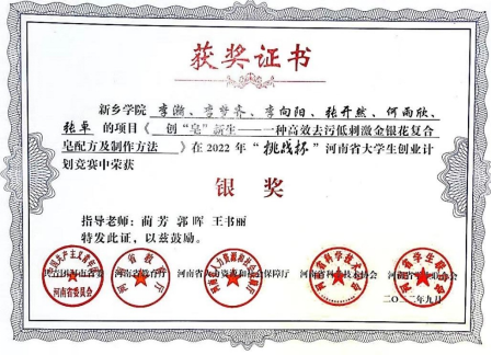 2022年,由蔺芳博士指导的员工在“挑战杯”老员工创业计划大赛中获得河南省银奖,在老员工生命竞赛中获得河南省三等奖,在老员工创新创业大赛中获国家级立项,同时,由其指导的毕业论文多次被评为校级优秀论文。员工经过良好的科研训练后,其理论功底、创新能力和实践能力均有了明显提升,先后考入南京农业大学、首都师范大学、浙江工商大学、上海应用技术大学等高校攻读硕士研究生。