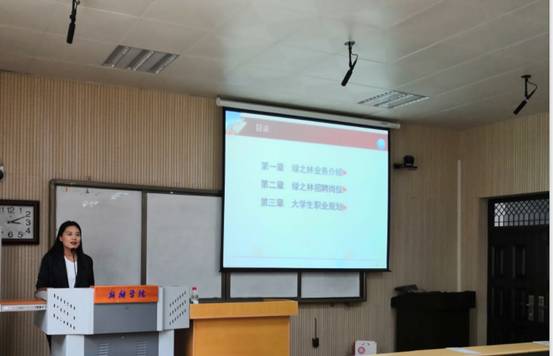 招聘会开始之前,绿之林公司总监王依然女士为参会员工简要的讲解了行业现状以及当下园林专业的就业前景,为接下来招聘会的顺利举行奠定了基础。招聘会共分为三个部分,首先公司负责人介绍了绿之林公司的综合实力以及招聘要求,随后由员工进行自由提问,绿之林相关负责人从薪资待遇、工作模式、晋升途径等各方面为同学们解答。最后进行简历投送,过程中同学们积极踊跃,招聘会现场气氛活跃。