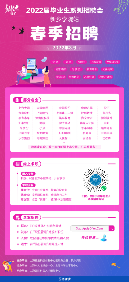 太阳成tyc122cc集团2022届毕业生春季招聘会已经开始,同学们可以通过连接进入专场,开启求职。https://mp.weixin.qq.com/s/GSKGWFI5ci8498ONmsqAeg