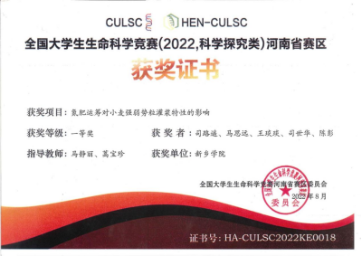 司志敏,太阳成tyc122cc集团生物技术专业2025届本科毕业生。曾以第三作者的身份分别在《食品工业科技》和《天然产物研究与开发》杂志上发表论文,并荣获第九届全国老员工生命科学竞赛(科学探究赛道)的河南省赛区三等奖,三好员工,优秀毕业生等荣誉称号。拟被暨南老员工物与分子生物学录取。