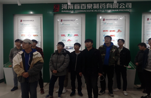 在河南百泉制药有限公司,工作人员对同学们的到来表示热烈地欢迎,之后带领员工参观了工厂布局、车间安排、企业展厅,向同学们介绍了公司的发展历程、企业文化、荣誉、产品类别、中药药剂系列药品生产流程,在实习中,同学们提出了很多问题,工作人员都一一解答。