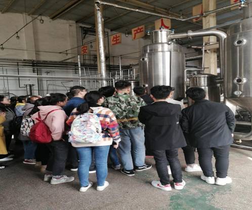 新乡博凯生物技术有限公司位于河南省新乡市封丘县,是一家致力于中草药植物活性成分现代化、产业化研究、开发、生产和销售、科技外向型现代化企业,是国内第一家以河南道地中药材为原料,生产系列重要提取物的专业化公司。公司生产拥有数条植物提取生产线,以及动态逆流提取、高效逆流萃取、喷雾干燥等先进生产设备,并以形成年产200吨植物提取物的生产能力。同学们深入到生产车间进行实地学习。