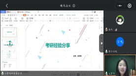 为了进一步提高公司员工的考研热情,明确考研目标,掌握相关考研技巧,了解更多考研信息,按照《生命科学与基础医学公司员工考研工作方案》安排,结合目前疫情实际情况,公司按专业分开举行考研系列活动。2022年4月29日晚上7:00点,食品科学教研室利用腾讯会议召开2022年考研经验线上交流会。邀请2022届食品科学与工程专业已被西南大学、宁波大学、河南工业大学录取的郭晓雨、刘思琪和王梦尧三位同学作为考研员工代表,分享考研经验。来自食品科学与工程专业2019级1班和2021级专升本1班的近70名同学参加了此次交流会。会议由食品科学教研室王利平老师主持,食品科学教研室其他部分教师参加。