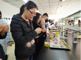 接着,老师们把做好的饺子下锅煮熟,扑鼻的气味令人食欲大开。在大家的分工合作下,一碗碗热腾腾的饺子在期待中被端上了餐桌,其中还有不少教职工们的“创意美食”。大家一边品尝着美食,感受寒冬里集体的温度,一边聊着工作和生活。大伙齐心协力包的饺子色香味倶佳,令人回味无穷,以致活动结束时,不少老师依然意犹未尽。