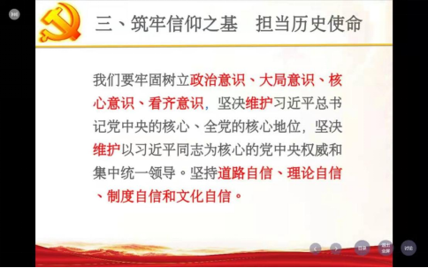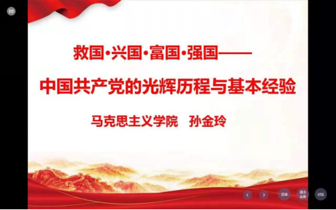 此次党课的主题为“党的光辉历程与基本经验”。首先,孙老师以中国共产党一百年来历史发展的主题“实现中华民族伟大复兴”为切入点,对战争年代、建国时期、改革开放时期等阶段进行了深入细致的介绍。接着,孙老师准确把握党的十九届六中全会精神的精髓要义,深刻揭示伟大建党精神,系统阐明了党带领人民百年奋斗的宝贵经验和深刻启示。最后,孙老师号召同学们牢固树立“四个意识”、坚定“四个自信”,鼓励大家努力学习科学文化知识,发扬革命精神,继续奋斗,以史为鉴,积极参与到中国特色社会主义建设事业中来。