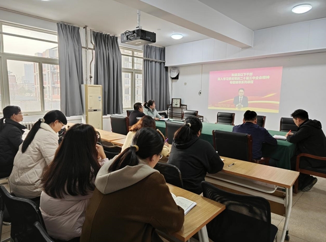11月19日下午,教师第二党支部在公司三楼会议室召开了党的二十届三中全会精神教育培训会,会议由党支部书记蔺芳主持。